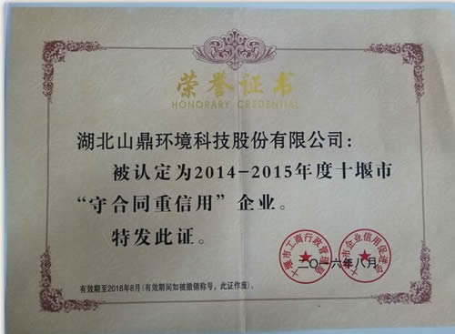 祝贺公司获评由十堰市工商行政治理局、十堰市企业信用增进会揭晓的(2014—2015年度)“守条约重信用”企业声誉证书。。。。。